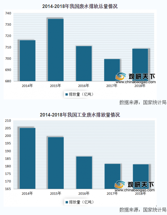 廢水排放方面,雖然有下降,但下降幅度不大,仍維持在較高水平。數(shù)據(jù)顯示,2018年我國廢水排放總量達到了708.8億噸,較上年同期增長1.3%。其中工業(yè)廢水排放量為181.3億噸,城鎮(zhèn)生活污水排放量為527.3億噸。醫(yī)院用純水設(shè)備